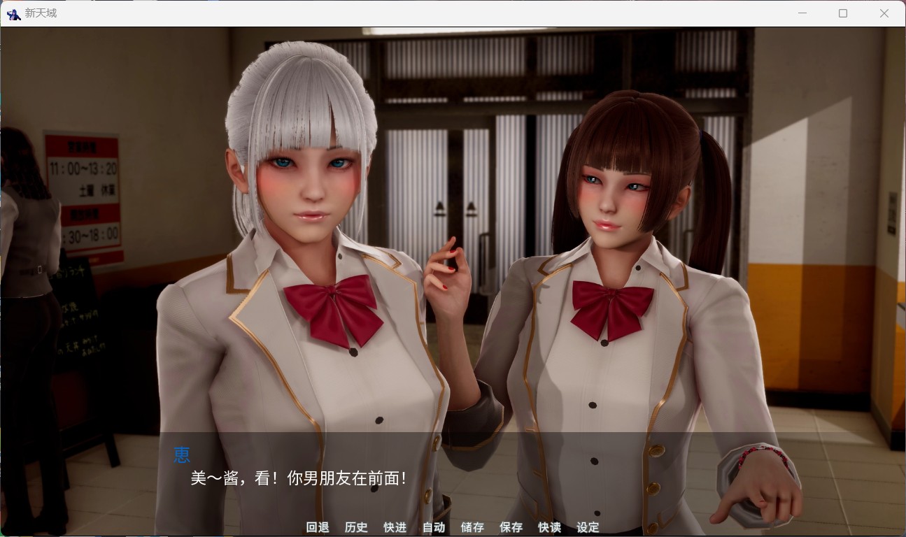 我还在学习如何在游戏中实现变量,所以目前,游戏中的选择不会影响剧情。下个版本我会加入真实选择系统,根据你的选择会有场景激活。